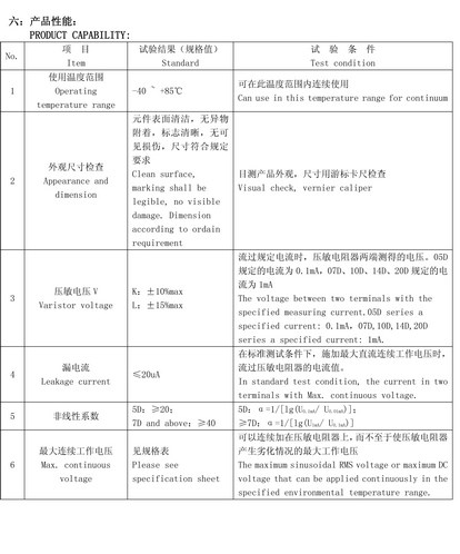 壓敏電阻(氧化鋅)